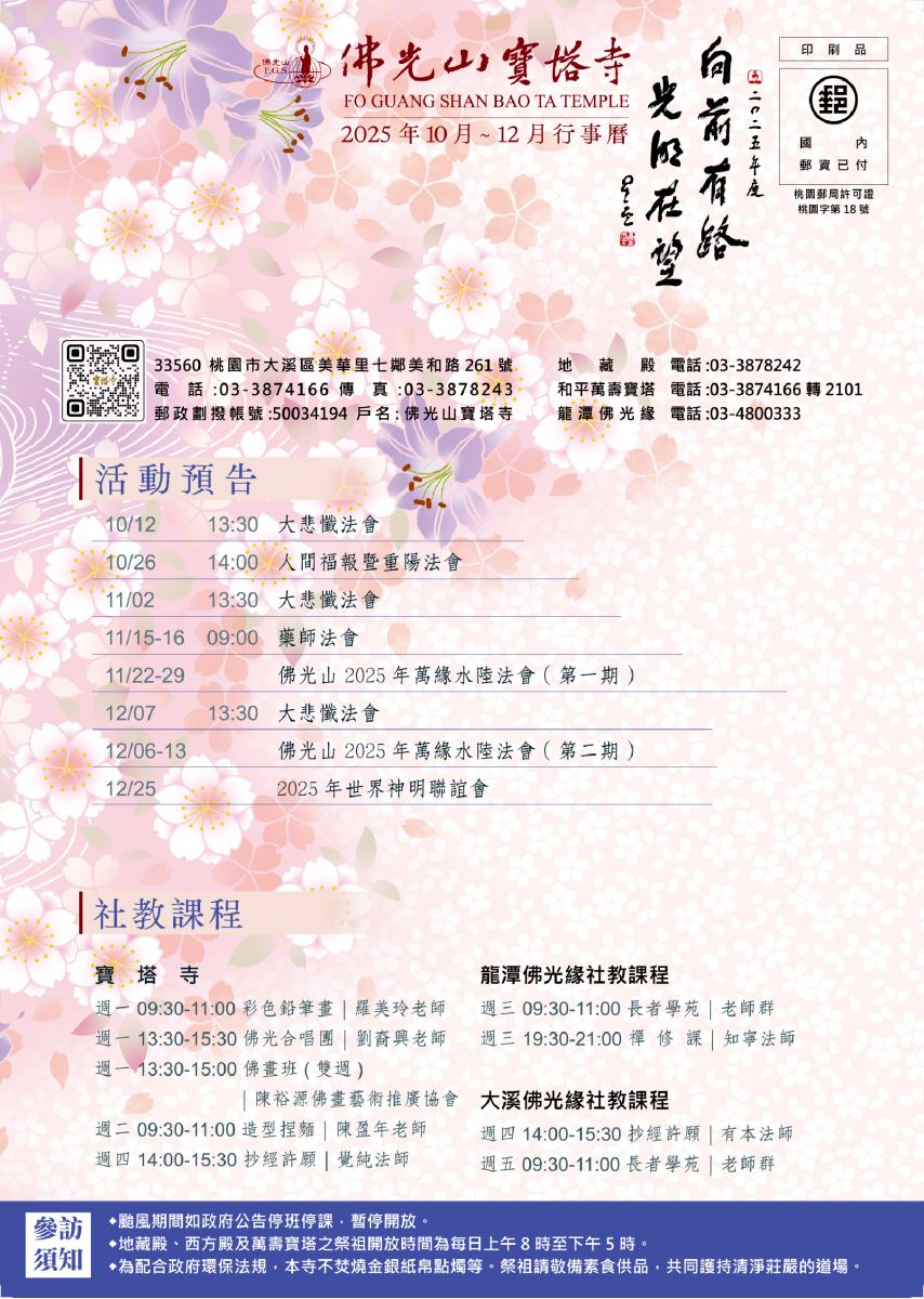 2025 年 10-12月行事曆—正面